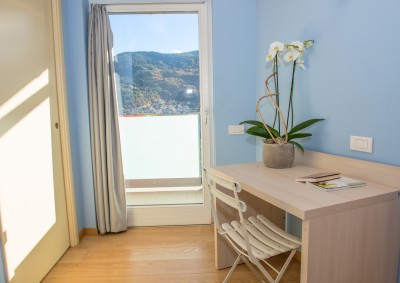 An inviting and spacious room with wood furniture, private bathroom (towels and bedding included), balcony with wonderful views across the valley and up to the Lagorai peaks, plus free Wi-Fi.