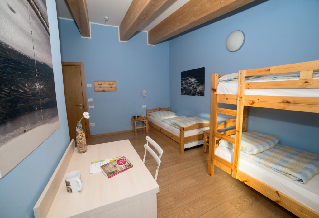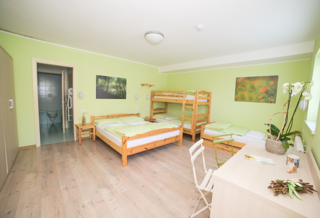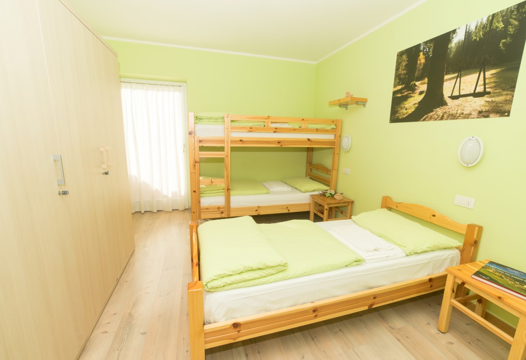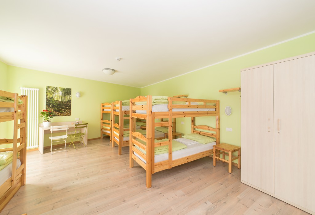 A bright, spacious room with four bunk beds. With split bathroom (toilet and shower in separate rooms), towels and bedding included, large balcony with wonderful views across the valley, plus free Wi-Fi.