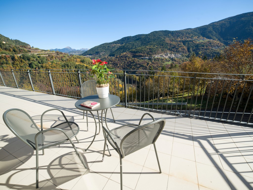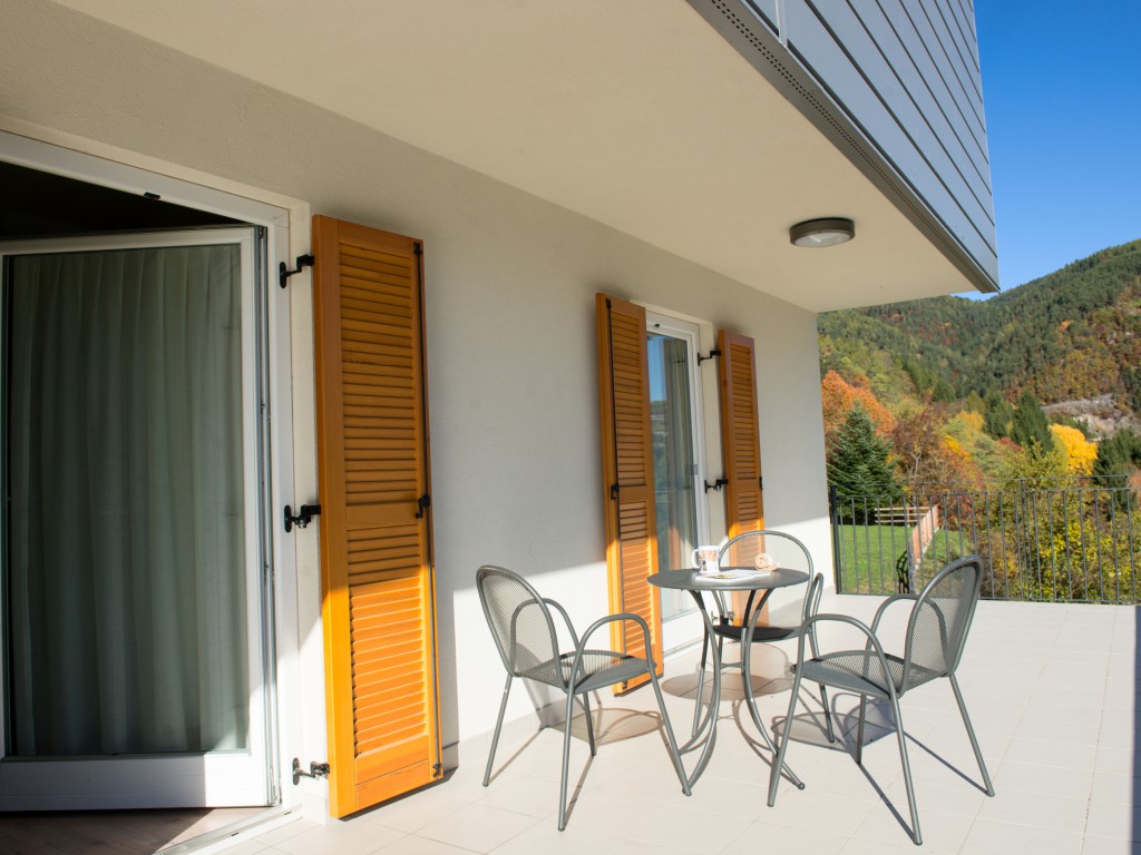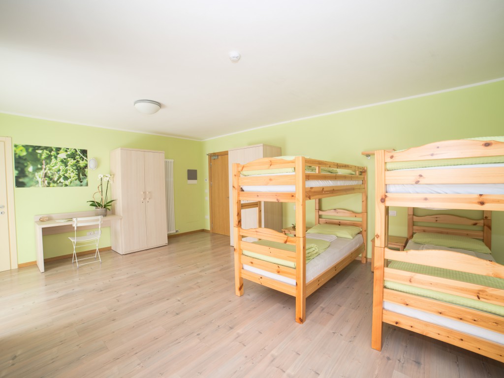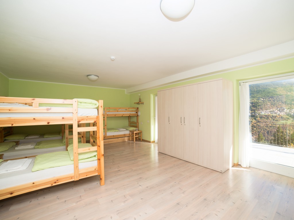 A bright, spacious room with four bunk beds. With split bathroom (toilet and shower in separate rooms), towels and bedding included, large balcony with wonderful views across the valley, plus free Wi-Fi.